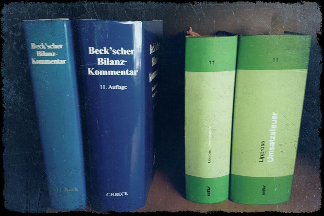 Dabei sind mir zwei Schätze in die Hände gefallen „ Lippgross- Umsatzsteuerkommentar“ erste Auflage und „Beck‘scher Bilanz-Kommentar“ 2. oder 3. Auflage.-Ich habe es gerade nicht mehr genau im Kopf. Ich war verblüfft wie dünn die Bücher damals noch waren. Ich habe zum Vergleich die beiden Ausgaben mit der jeweils aktuellen Auflage fotografiert.