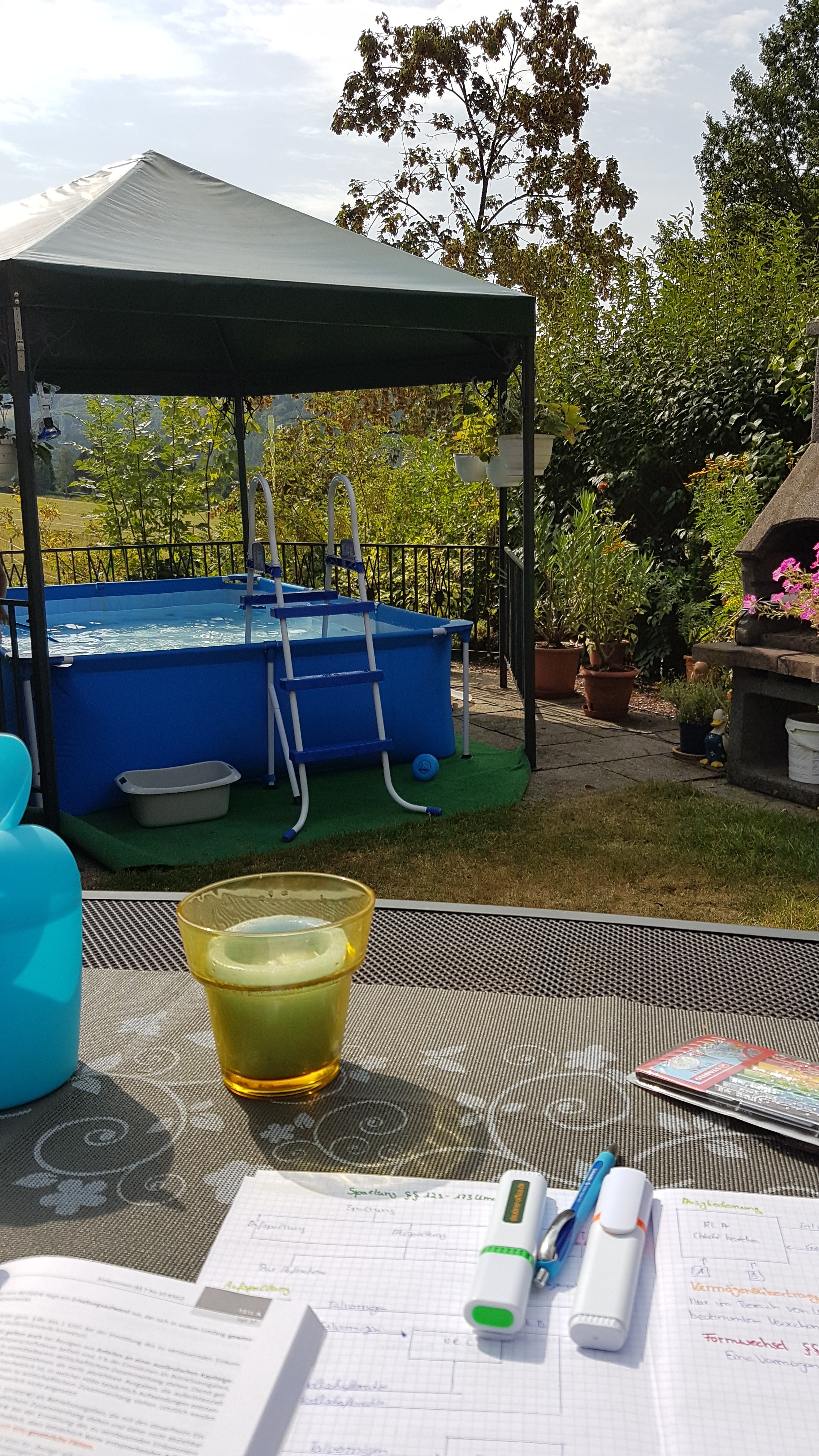 Ich bin jetzt seit einer Woche zuhause und hatte mir vorgenommen in dieser und in der nächsten Woche Klausuren durchzuarbeiten. Sozusagen als Vorbereitung für den Klausurenkurs. Die Hitze nacht mir ehrlich auch zu schaffen. Ich kann mich nicht erinnern, dass es hier je so lange am Stück heiß war.