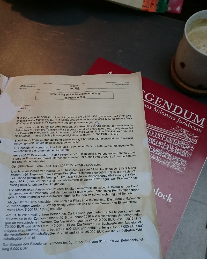 Kennt ihr solche Tage? Nun habe ich am Wochenende wieder nur einen Teil der Klausur aus dem Fernlehrgang geschafft und werde wohl Ostern noch einiges an Zeit mit dieser verbringen müssen.